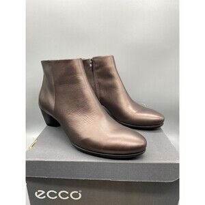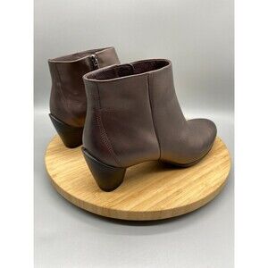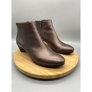 Ecco Boots Womens 41 Brown Leather Heels Sculptured 45 Booties Metallic Side Zip
