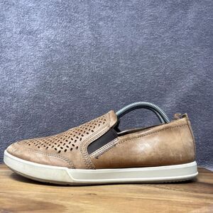 Ecco Collin 2.0 Slip On Leather Brown Perforated Casual Sneakers Men's Size 9