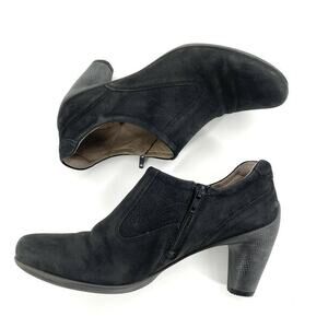Ecco Comfort Nubuck Leather Heels Black Side Zip 41/10