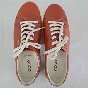 Ecco Congnac Tan And White Leather Lace Up Sneakers EU 40 | US 9 / 9.5