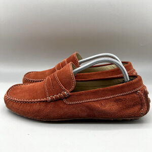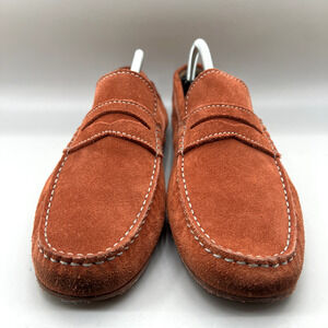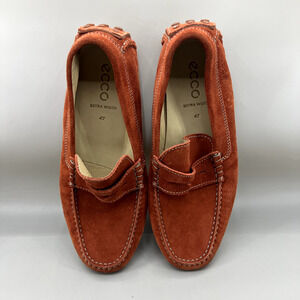 Ecco Dynamic Moc 2.0 Driving Penny Loafers Men Size 8 8.5 Wide US, 42 EU Orange Suede Slip on Shoes