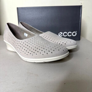 Ecco Felicia Slip On Wedge Loafers Gravel Gray Women's 10-10.5/EU 41 NWB Comfort