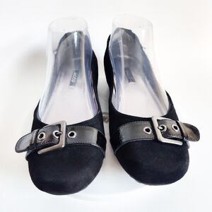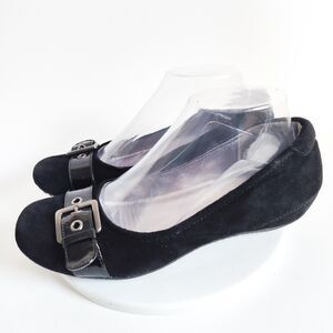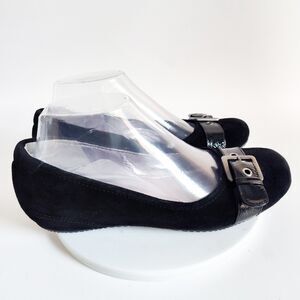 Ecco Flats Size 6 - 6.5 / 37 Suede Patent Leather Belt Buckle Black Comfort Shoe