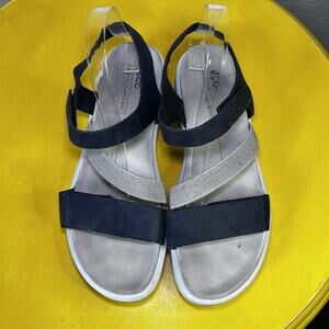 Ecco Flowt 2 Black & Gray Leather Strappy Slip On Comfort Sandals Women’s 10 41