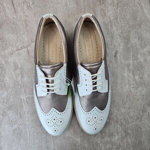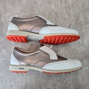 Ecco Golf Shoe Womens 39 Leather Wingtip Brogue Saddle Spikeless Golfing Sneaker