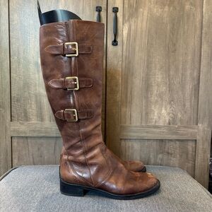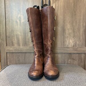 Ecco Hobart Buckle Riding Boots Knee High brown leather