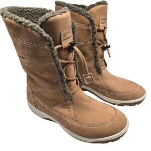 Ecco Hydromax Mid-Calf Tan Leather Water Resistant Toggle Lace-up Boots US 8-8.5