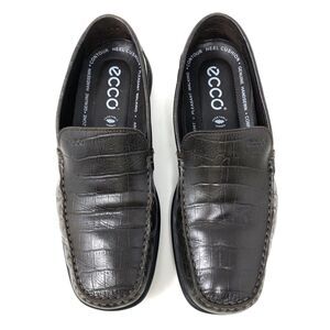 Ecco Leather Croc Embossed Driving Loafers Mens Size 41 US 10 Euro Preppy Mocs