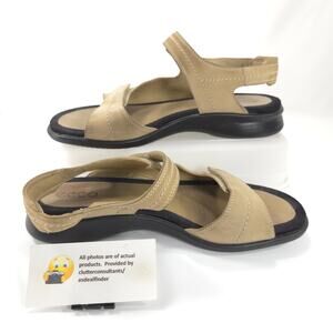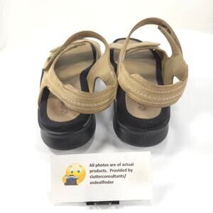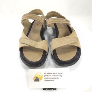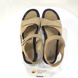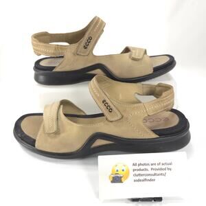 Ecco Leather Sling Back Ankle Strap Sandals Womens Size 10.5 41 Beige Black