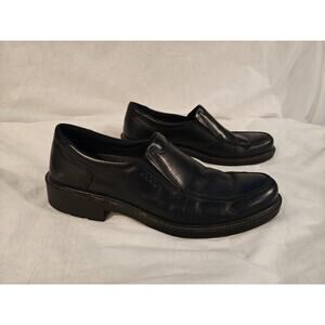 Ecco Mens 44/10.5 Leather Comfort Slip On Black Casual Loafers Round Toe