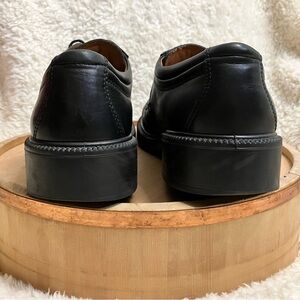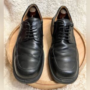 Classic black leather oxfords. Sleek design. Comfortable fit. In very good condition with no damage and light to moderate wear.