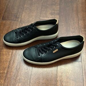 Ecco Men’s Black Leather Lace-Up Sneakers, Size 10