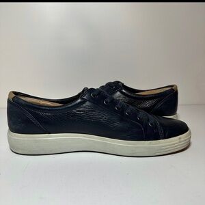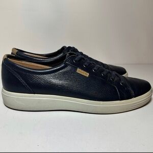 Ecco Mens Soft Navy Blue Leather Lace Up Casual Sneaker Shoes Size 11 US / 45 EU see pictures for reference