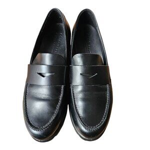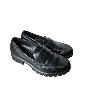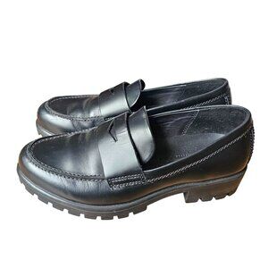 Ecco Modtray Penny Leather Black Chunky Loafers Lugged Rubber Women's EU37/US6.5