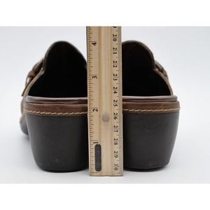 Ecco Mules Womens 8 Brown Leather Moc Toe Buckle Accent Slip On Casual Shoes