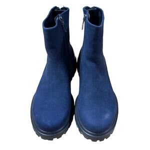 Ecco NWOB TredTray Waterproof Blue Suede Ankle Boot Size 6 Back Zip Rubber Sole