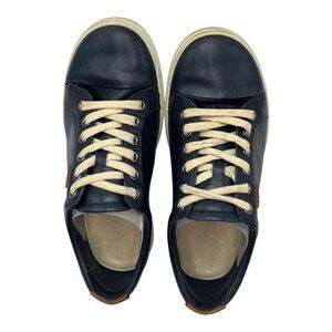 Ecco Navy Leather Lace-Up wide Shoes Womens Size 35/5 Danish Design Comfortable