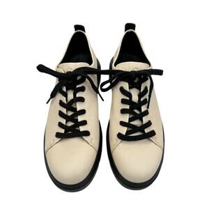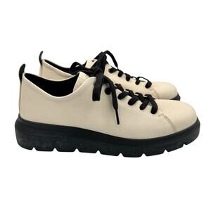 Ecco Nouvelle Cream Limestone Leather Lace Up Chunky Lug Sole Sneakers Shoes