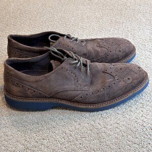 Ecco Brown Suede Leather Wingtip Brogue Oxford Shoe Size EU 45 / US 11-11.5 Classic Preppy Traditional Comfort Shoes European