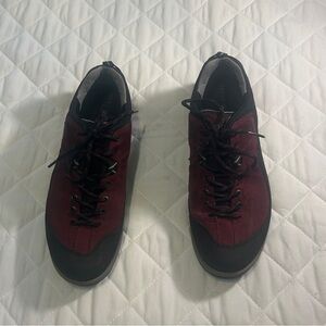Step into comfort and style with Ecco's athletic shoes, featuring a striking maroon and black color scheme. Designed for performance, these shoes offer excellent support and durability, making them perfect for your active lifestyle. The robust lacing system and protective reinforcements ensure a secure fit, while the sleek design adds a touch of elegance to your athletic gear.