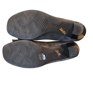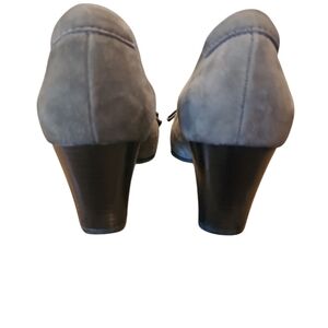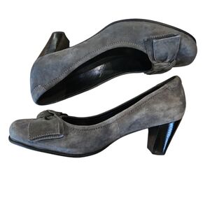 Ecco SZ 8.5 Sage Gray Suede Closed Toe Slip On Pumps Bow Accent 2.5" Heel