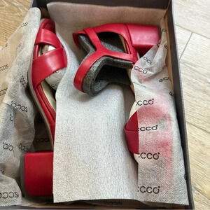 NIB Ecco Sandal Red Nova Shape 35 MM Leather Sandal Size 41, 10-10.5
