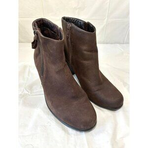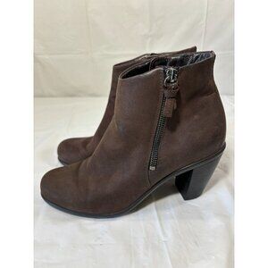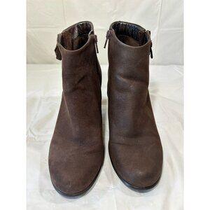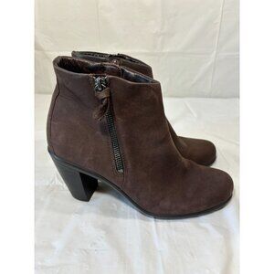 Ecco Sculptured Ankle Boots Brown Nubuck Leather Comfort Zip Heel Bootie