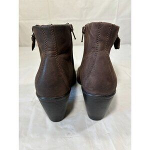Ecco Sculptured Ankle Boots Brown Leather Comfort Zip Heel Bootie Size 8-8.5