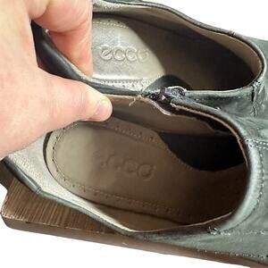 Step out in style with these beautiful Ecco sculptured black leather heeled booties! These pre-loved boots are in great condition and feature a sleek design and a comfortable 3" heel. Perfect for adding a touch of elegance to any outfit. Don't miss out on this wardrobe essential!