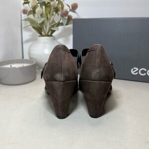 NWB Ecco Shape 55 Plateau Coffee/Coffee Brown Suede Heels Mary Jane
