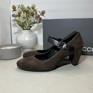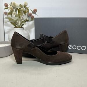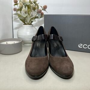 Ecco Shape 55 Plateau Mary Jane Suede Heels Coffee Brown Women's 40/9-9.5 NWB