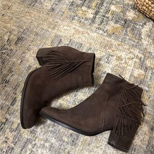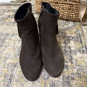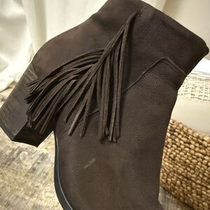 Ecco Shape 55 dark Brown Fringe Leather Ankle Boots