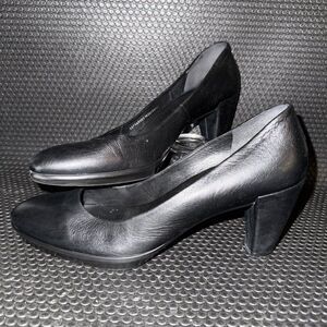 Ecco Shape 55 Plateau Black Leather Slip On Pumps Heels Women’s Size 8-8.5