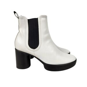 Ecco Shape Scuplted Motion 55 White Leather Chelsea Ankle Boots Women's Size 5.5