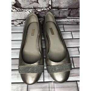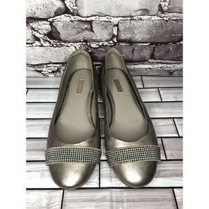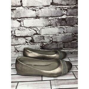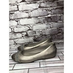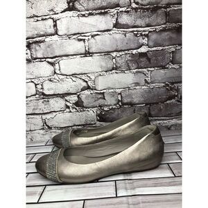 Ecco Silver Pewter Leather Rhinestone Ballet Flats Shoes Women’s Sz 40EU/9M US