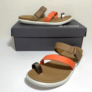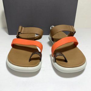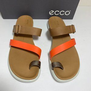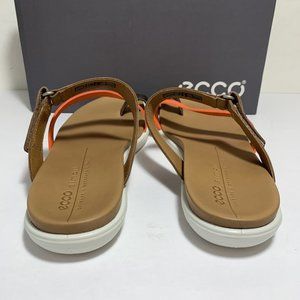 Ecco Simpil Sandals Leather Strap Slides Colorblock Tan Orange Size 41 US 10 NEW
