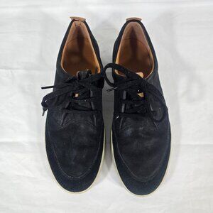 Ecco Men Size 10 Sneaker Shoes Black Leather Suede Comfort Round Toe Lace Up Low Top. Pre-owned
