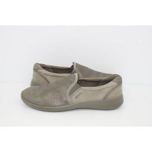 Ecco Soft 5 Slip On Shoes Women's 40 Gray Metallic Leather Cushioned Round Toe
