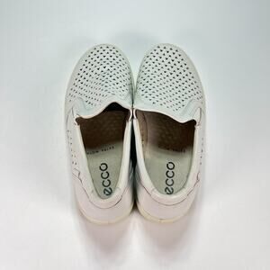 Ecco Soft 7 Extra Width White Soft Leather Slip On Sneakers Shoes Women's Size 6