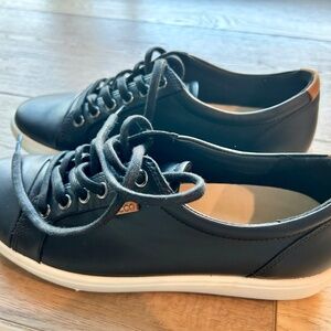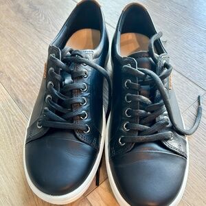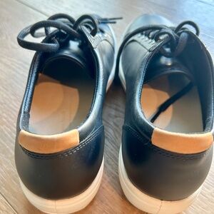 Ecco Soft 7 leather sneakers in black. I don’t really wear black, so I never got around to wearing these. They are in brand new condition except for a small mark on the left edge, see pic.