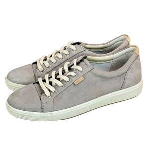 Ecco Soft 7 Leather Sneakers Womens Sz 38 US 7-7.5 Gray Lace Up Comfort