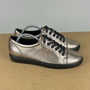 Ecco Soft 7 Metallic Casual Sneakers Womens 8/8.5 EU 39 Pewter Low Top Lace Up