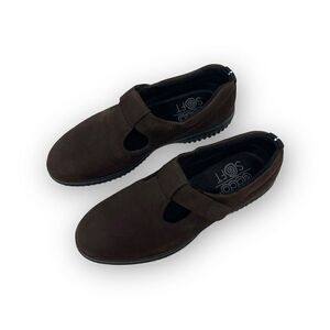 Ecco Soft Loafers Brown Nubuck Leather T-Strapped Women’s Size 38 EU 7/7.5 US