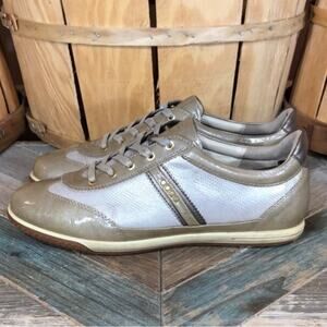 Previously loved in great condition, some wear on the upper and soles with lots of life left. Gold/silver colorway, water resistant upper, women’s size 8-8.5 (39)