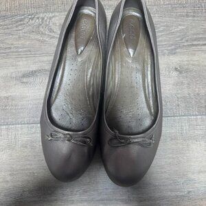 Ecco Tan Metallic Ballet Flats with Bow Accent Women's Size EU 41