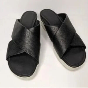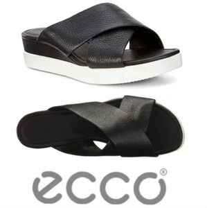 Ecco Touch Plateau Black Leather Platform Slide Cross Strap Sandals 7