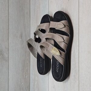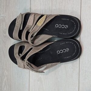 Ecco Womens 3 strap Leather Hook&loop Sandals shoes sz 40/9-9.5