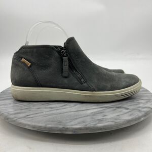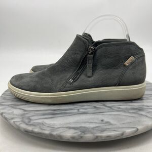 Ecco Womens 40 Sneakers Grey Soft 7 Bootie Nubuck Ankle Shoes Side Zip Mid Top