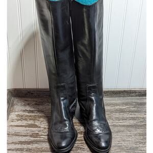 Ecco Women's Black Leather Tall Riding Boot Wingtip Detail Side Zipper Size 37