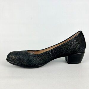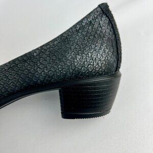 ECCO black textured snake print low block heel comfort pumps